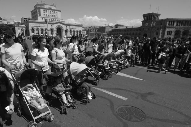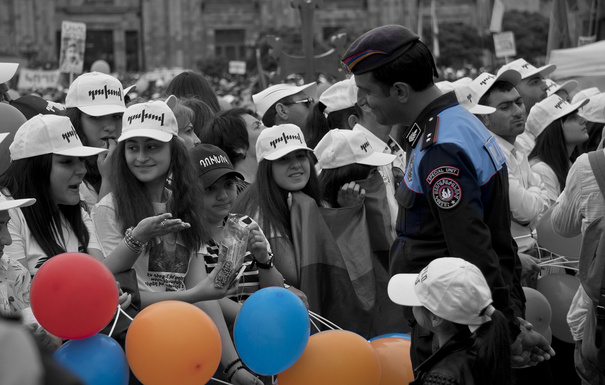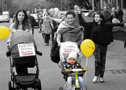 School pupils skipped classes en masse, joining the protests against the regime. Parents took their small children to the rallies. This is quite unusual behavior for Armenians who are very cautious and protective of their children. This was a move symbolizing the peacefulness of intentions.