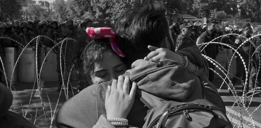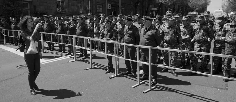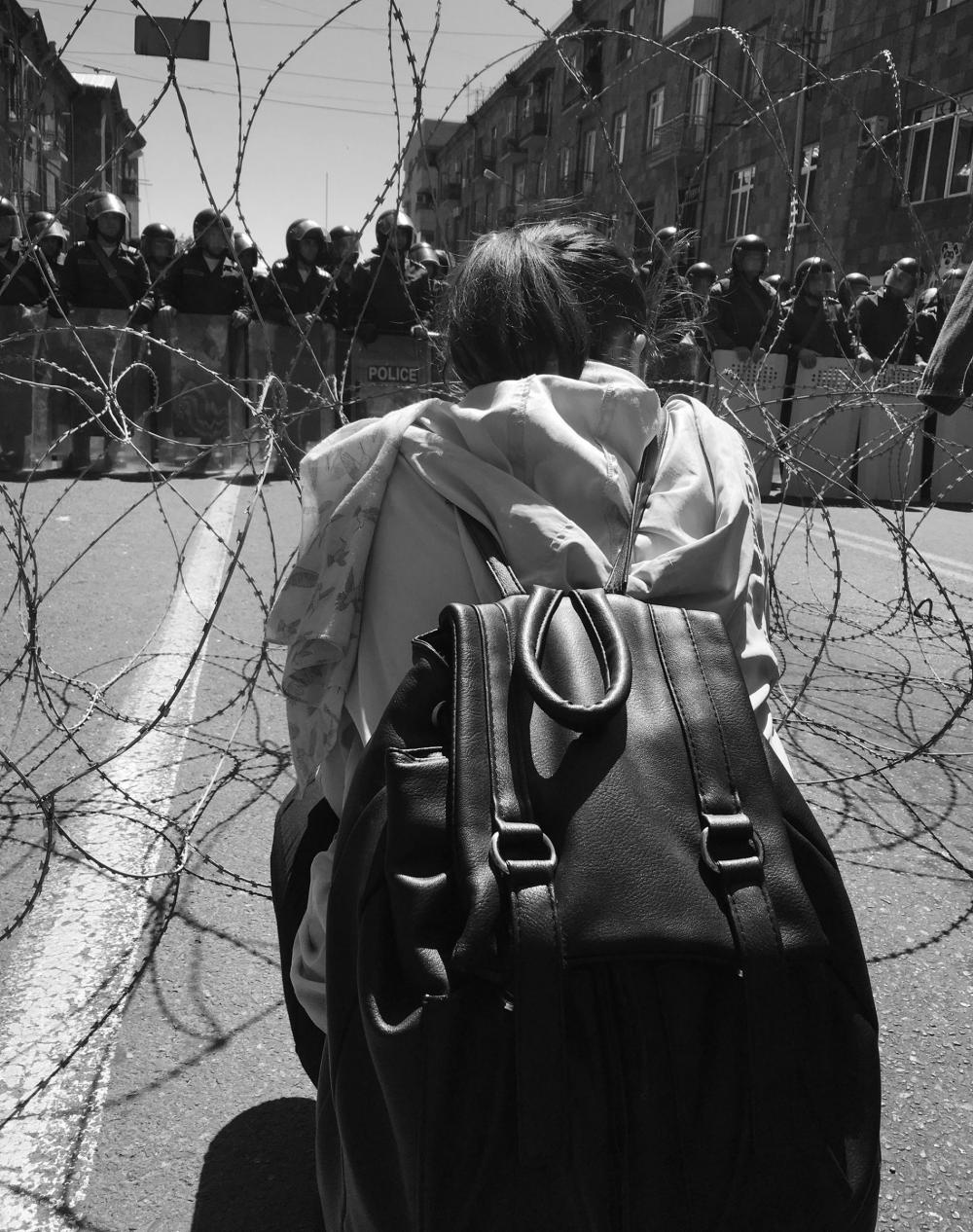 It was the day before the MPs voted for Serzh Sargsyan to become Prime Minister. Police lines and barbed wire featured in front of the President’s Office, Baghramyan 26. There was tension, fear. In about half an hour, the police would use force, leaving dozens injured. Later, Nikol Pashinyan and his team would take the decision to decentralize their actions, thus making it hard for the police to concentrate force and use it against a large number of people at once. Love didn't win that day, but it would soon...