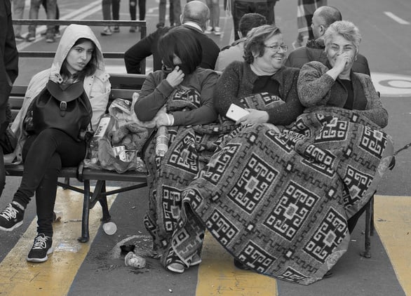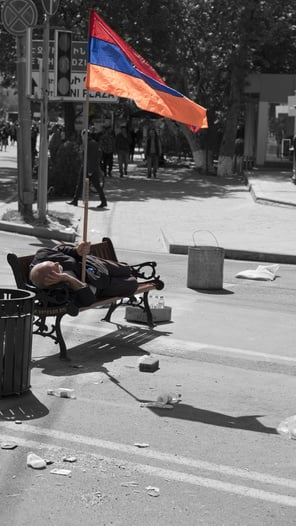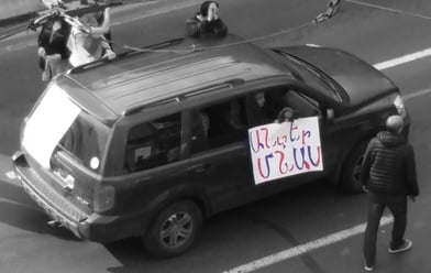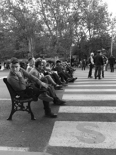 What can one use to block traffic? Just about anything. Park benches, vehicles, garbage containers and, after all, themselves. This experience came from the past – the Electric Yerevan protests kept one of the Yerevan's main avenues, Baghramyan, blocked for more than two weeks in 2015.