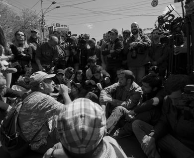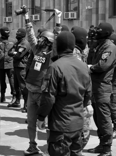 Armenian reporters were one of the main restraining factors for the police, when it came to using force against protesters. Being in these hot spots required not only bravery, but also physical abilities and fast reactions, as the protests were decentralized and traffic was blocked.